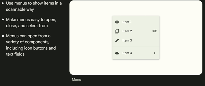 | SCR-M1 | Menu | Top app bar > Leading icon (иконка Меню) > Modal navigation drawer (Меню) | Корректность функционирования меню | 1.