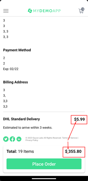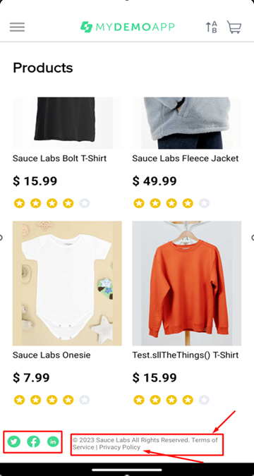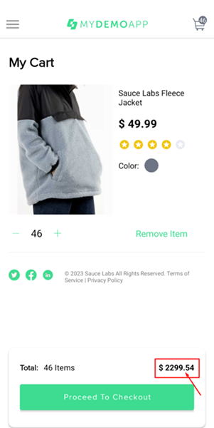 к улучшению: 1. Добавить информацию о количестве товара по каждой позиции, а не только об общем количестве товаров в заказе. 2. Убрать информацию о рейтинге товаров, т.к. она уже не важна для пользователя на этом этапе. 3. Добавить гиперссылки на документы Terms of Service и Privacy Policy в текст, размещенный внизу экрана: "© 2023 Sauce Labs All Rights Reserved. Terms of Service | Privacy Policy". |